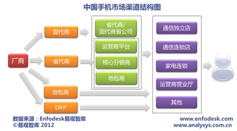根據(jù)易觀智庫(kù)分析,目前我國(guó)手機(jī)市場(chǎng)渠道開始進(jìn)入轉(zhuǎn)型期。首先一個(gè)比較明顯的變化是手機(jī)廠商直供模式的加強(qiáng),渠道的扁平化趨勢(shì)進(jìn)一步加劇。比較明顯的一個(gè)例子是三星手機(jī)的渠道改革,從2010年12月起,三星手機(jī)全面推行了直供模式,經(jīng)過一年多的發(fā)展,三星對(duì)手機(jī)渠道的把控能力不斷得到了提升。