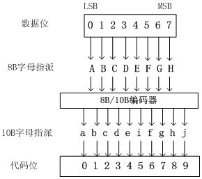 在串行鏈路通信中,為了實(shí)現(xiàn)信號(hào)時(shí)鐘的恢復(fù),需要避免出現(xiàn)長(zhǎng)串0和長(zhǎng)串1,同時(shí)保持電路上正負(fù)電平平衡,能正確地交流耦合避免信號(hào)失真,需要傳輸信號(hào)中的0和1數(shù)量數(shù)目相等,因此業(yè)界廣泛應(yīng)用8B/10B編解碼方法:實(shí)現(xiàn)8B到10B的映射(圖4),即一個(gè)字節(jié)(8bits)用10bits來(lái)表示,從中挑選出連續(xù)0或者1個(gè)數(shù)不會(huì)超過(guò)3個(gè),0和1的個(gè)數(shù)差不大于2 (最多6個(gè)’0’或’1’)。