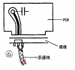 高頻電路中,印制導(dǎo)線分布參數(shù)對信號影響大,且不容易進(jìn)行阻抗匹配,可局部使用專用屏蔽線連接,如圖7所示。