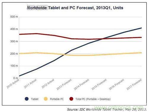 當前消費類電子產(chǎn)品的主要產(chǎn)品細分類型如下:配有3-5英寸屏幕的智能手機;5-8英寸的超級手機或平板手機;8-11.6英寸的平板電腦;11.6-15.6英寸的超極本;以及最大可達17英寸的筆記本電腦。在其5年的產(chǎn)品歷史中,平板電腦被認為是升溫最快的移動設(shè)備,根據(jù)預(yù)測,到2015年其銷量有望趕超個人電腦。因此,PC供應(yīng)商開始將重心轉(zhuǎn)移至用戶界面友好的觸摸設(shè)計上,比如具有與筆記本電腦或平板電腦相同功能的可翻轉(zhuǎn)筆記本電腦。