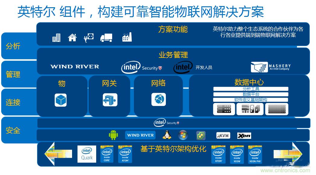 有鑒于此,英特爾將基于分析、管理、連接、安全四大關(guān)鍵點,提供端到端可靠、智能物聯(lián)網(wǎng)解決方案,加速物聯(lián)網(wǎng)解決方案發(fā)展。