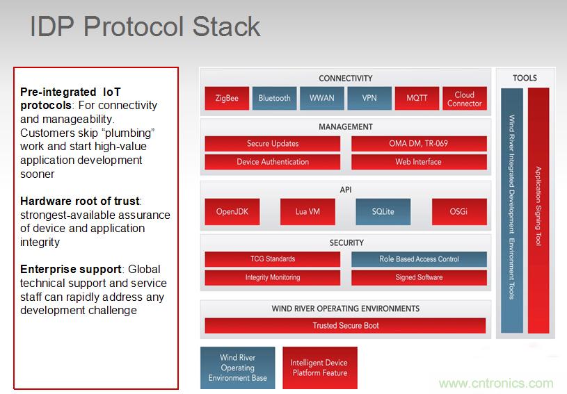 當(dāng)下物聯(lián)網(wǎng)面臨了三大挑戰(zhàn):連接、安全以及管理(數(shù)據(jù)的管理與分析),此外還存在新舊設(shè)備交替的過渡期,而Gateway是讓傳統(tǒng)設(shè)備實現(xiàn)聯(lián)網(wǎng)的最佳方式(如電表),蘇建豪如是說。風(fēng)河在Gateway中提供了IDP,是一個物聯(lián)網(wǎng)平臺,廠商可以在上面自己做開發(fā),而不需要再下功夫去考慮連接、安全等問題,有效節(jié)省開發(fā)時間。