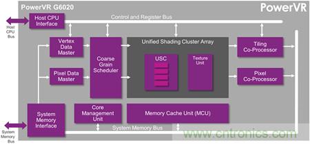 新款PowerVR G6020 GPU是專(zhuān)為能以超小硅晶面積實(shí)現(xiàn)繪圖功效而設(shè)計(jì),能獲得更佳的真實(shí)裝置性能與兼容性,卻無(wú)需不必要的額外開(kāi)銷(xiāo)。它是PowerVR Series6XE系列產(chǎn)品中尺寸最小的成員,具備四個(gè)算數(shù)邏輯單元(ALU)內(nèi)核,硅晶面積僅2.2mm2 (28納米制程,400MHz)。為達(dá)到此目標(biāo),G6020具備一個(gè)特別為UI體驗(yàn)設(shè)計(jì)的高度優(yōu)化的統(tǒng)一渲染集群(USC)引擎。此特別配置的新款USC可在最小的面積與功率預(yù)算內(nèi)實(shí)現(xiàn)最佳的特性組合,并能與其它的Rogue USC完全兼容。