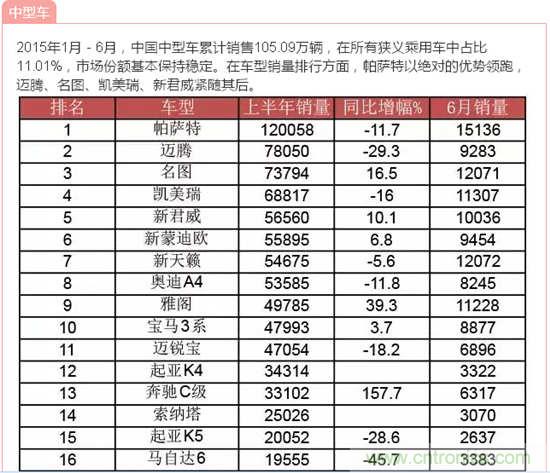 根據(jù)中國(guó)汽車工業(yè)協(xié)會(huì)的數(shù)據(jù),2015年上半年380余款車型的銷量按照級(jí)別分類如下: