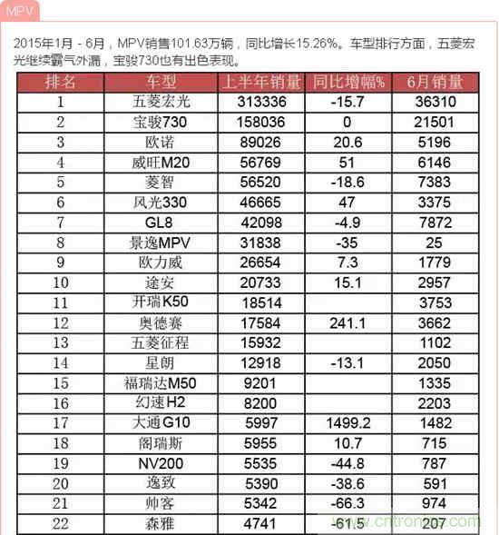 據(jù)中國(guó)汽車工業(yè)協(xié)會(huì)發(fā)布的數(shù)據(jù),2015年6月,汽車產(chǎn)銷量環(huán)比下降,同比繼5月后再次雙雙下降;上半年,汽車產(chǎn)銷增速比上年同期明顯回落。說(shuō)到汽車,小編想到了由我愛(ài)方案網(wǎng)承辦的“創(chuàng)業(yè)之星”2015全球創(chuàng)客大賽成都賽場(chǎng)中的一個(gè)參賽項(xiàng)目:智能車載太陽(yáng)能轉(zhuǎn)化防護(hù)裝置,它改變?cè)扔扇斯ふ周囐M(fèi)時(shí)費(fèi)力方法,完全達(dá)到遙控自動(dòng)罩車,屬于汽車產(chǎn)品領(lǐng)域的一項(xiàng)新技術(shù),歡迎大家到淘方案上了解詳情!下面跟著小編來(lái)看看中國(guó)汽車在2015年1月-6月的銷量數(shù)據(jù)!歡迎參與互動(dòng)分享!