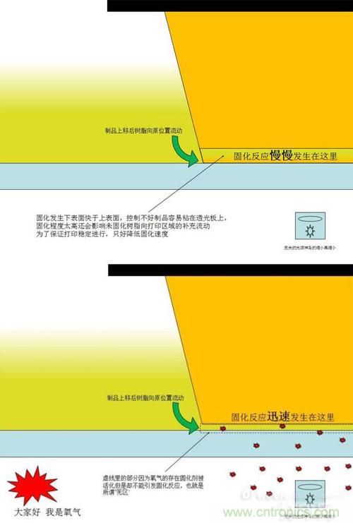 傳統(tǒng)SLA技術(shù)(上圖)與改良的CLIP技術(shù)(下圖)對比