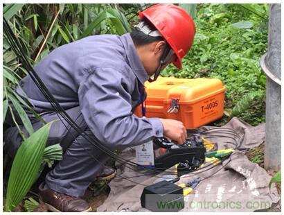 野外現(xiàn)場——第一時(shí)間趕到現(xiàn)場,通過住友電工T-400S熔接機(jī)快速接續(xù)線路,保障網(wǎng)絡(luò)暢通