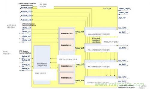 圖2中的STATS_IP架構模塊圖標出了三個子部件:每條通道的同地址比較管道(SACOMP)區(qū)塊、請求-復用-解復用(REQ_MXDMX_CHn)區(qū)塊以及每條QDR IV應用通道1個的4個A-B通道配對計數(shù)器邏輯(ABCH_CTRL_CHn)區(qū)塊實例。