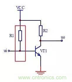 當(dāng)電流流過(guò)電阻時(shí),就在電阻兩端產(chǎn)生電壓,如圖集電極負(fù)載電阻R2就是起到這個(gè)作用的,將流過(guò)電阻R2的電流轉(zhuǎn)換成電壓從UO輸出,這種電阻在電路中一般稱為集電極負(fù)載電阻。