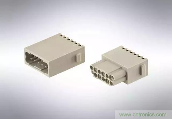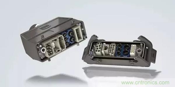 第二個例子是,Han® 高密度模塊:滿載的情況下,在模塊中有25個插針,能夠傳輸4A/50V的信號。其他具有更高的接觸密度的Han®模塊也在開發(fā)之中。