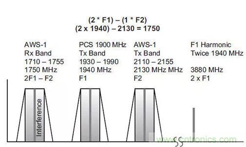 這對公式可以預(yù)測兩個載波的PIM頻率: