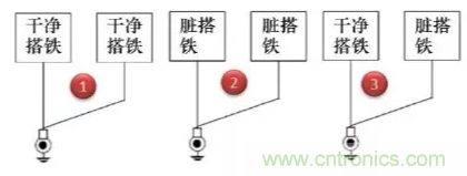 第1種方式干凈搭鐵回路之間的回路并接是允許的;第2種臟搭鐵回路之間的回路并接也是完全可以接受的;對于第3種臟搭鐵與干凈搭鐵回路并接,通常是可以接受的,但需要得到相關專業(yè)的評審通過。