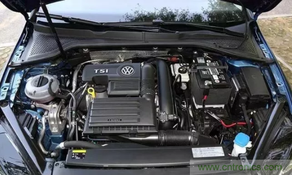 打開高爾夫的機(jī)艙蓋,發(fā)現(xiàn)機(jī)艙里面的管路,線束顯得有點(diǎn)零亂。