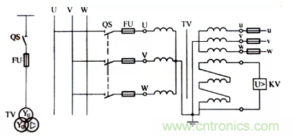 角形,構(gòu)成零序電壓過濾器,供給監(jiān)視線路絕緣的電壓繼電器。