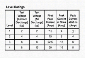 圖1:IEC61000-4-2規(guī)范指標一覽表。
