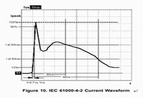 以系統(tǒng)級的方法來定義典型的ESD事件所采用的最常見的波形,是以其亞納秒上升時間和高電流電平(參見圖1)為顯著特征的IEC61000-4-2波形。這種波形的規(guī)范要求采用四級ESD量級。大部分設(shè)計工程師都要求把產(chǎn)品限定到最高級的8kV的接觸放電或15kV的空氣放電。當進行元器件級測試時,因為空氣放電測試在這樣的小型元器件上是不能重復(fù)的,接觸放電測試則是最適合的測試方式。