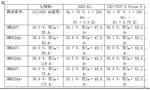 但是,Us、Ri和td沒(méi)有明顯的匹配。汽車工程師們是在汽車制造商的標(biāo)準(zhǔn)下進(jìn)行器件和電子單元的測(cè)試。Vishay每個(gè)額定功率的負(fù)載突降系列都可以滿足ISO-7637-2的要求,而不僅是汽車制造商的測(cè)試規(guī)范。