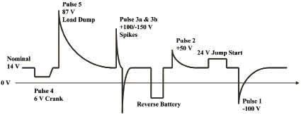 圖1ISO7637-2和汽車電源線上的主要電涌