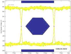 還有一種方法可以檢查這個(gè)軌對(duì)軌保護(hù)元器件對(duì)USB協(xié)議正常工作模式的影響,就是通過(guò)圖4的眼圖響應(yīng)來(lái)分析信號(hào)數(shù)據(jù)位的完整性。