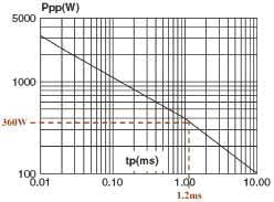 以SMAJ24A為例,從產(chǎn)品數(shù)據(jù)表摘取這些參數(shù)與圖11的曲線進(jìn)行比較,發(fā)現(xiàn)SMAJ24A符合ISO7637-2脈沖2測(cè)試的要求,可承受長(zhǎng)達(dá)1.2ms的360W指數(shù)脈沖,這個(gè)數(shù)值遠(yuǎn)遠(yuǎn)高于ISO7637-2脈沖2電涌強(qiáng)制的4μs時(shí)長(zhǎng)。