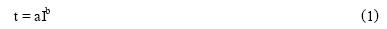 由于PolySwitch元件具有PTC效應(yīng),其動(dòng)作保護(hù)特性曲線部分的數(shù)學(xué)模型可參考PTC器件的阻溫特性來(lái)建立。該類特性的數(shù)學(xué)模型可采用冪函數(shù)或?qū)?shù)函數(shù)的形式。設(shè)其數(shù)學(xué)公式具有如下形式;