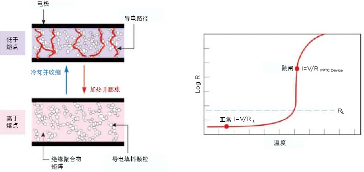 圖4. PolySwitch通過從低阻狀態(tài)轉(zhuǎn)變?yōu)楦咦锠顟B(tài)來響應(yīng)過流或過溫條件,幫助保護電路