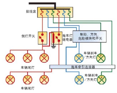 減輕了拖車牽引燈電路的導(dǎo)線重量