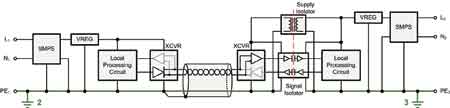 如隔離式DC/DC轉(zhuǎn)換器的電源隔離器以及如數(shù)字電容隔離器的信號(hào)隔離器避免了電流環(huán)路的創(chuàng)建及電流在具高達(dá)數(shù)千伏GPD的遠(yuǎn)程系統(tǒng)接地間流動(dòng)。