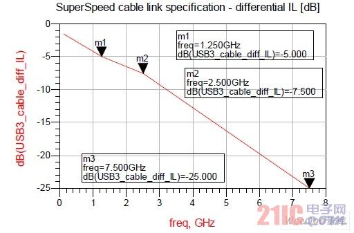 帶ESD防護(hù)的USB3.0超高速鏈路的信號完整性分別在帶ESD防護(hù)和未帶ESD防護(hù)的情況下,對圖1所示的整個USB3.0超高速鏈路執(zhí)行了信號完整性模擬。整個收發(fā)部分具備90歐姆差分阻抗,考慮了發(fā)送側(cè)和接收側(cè)的寄生效應(yīng)。測得數(shù)據(jù)表明了USB3.0電纜的狀態(tài)。規(guī)定最長USB3.0電纜長度為3米。