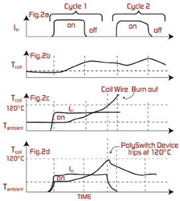 圖2PolySwitch器件通過限制線圈電流防止過流/過溫造成的損壞