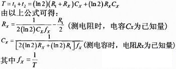 單片機(jī)測(cè)得振蕩輸出的頻率,計(jì)算后即可得到電阻和電容的值。不同量程對(duì)應(yīng)不同的電路參數(shù),利用開(kāi)關(guān)可方便地選擇對(duì)應(yīng)不同量程的對(duì)應(yīng)電路。