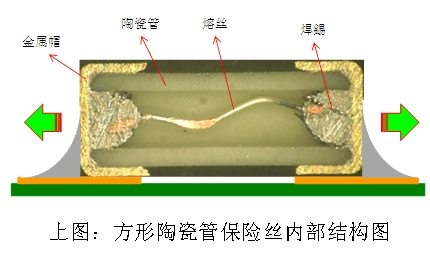 在市場上常見的2410尺寸125Vac或250Vac額定電壓貼片保險絲, 多是應(yīng)用傳統(tǒng)方形陶瓷管技術(shù)。這一類型貼片保險絲的兩端是采用金屬帽直接套在方型陶瓷管上, 再以焊錫將金屬帽與內(nèi)部熔絲焊接在一起。一旦產(chǎn)品在高溫的SMT產(chǎn)線上作業(yè),連結(jié)兩端金屬帽與內(nèi)部熔絲的焊錫極有可能會因高溫而再次發(fā)生熔融情形, 進而導致金屬帽脫落的風險。