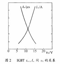 IGBT的短路電流和柵壓有密切關(guān)系,柵壓越高,短路時電流就越大。在短路或瞬態(tài)過流情況下若能在瞬間將vGS分步減少或斜坡減少,這樣短路電流便會減小下來,當(dāng)IGBT關(guān)斷時,di/dt也減小。集成驅(qū)動電路如EXB841或M579xx系列都有檢測vCES電路,當(dāng)發(fā)現(xiàn)欠飽和時,柵壓箝位到10V左右,增大vCES,限制過電流幅值,延長允許過流時間。短路允許時間tsc和短路電流Isc同柵極電壓vG的關(guān)系如圖2所示。