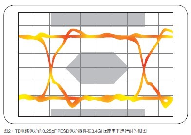 TE電路保護的0.25pFPESD保護器件在3.4GHz速率下運行時的眼圖表現(xiàn)如圖2所示。