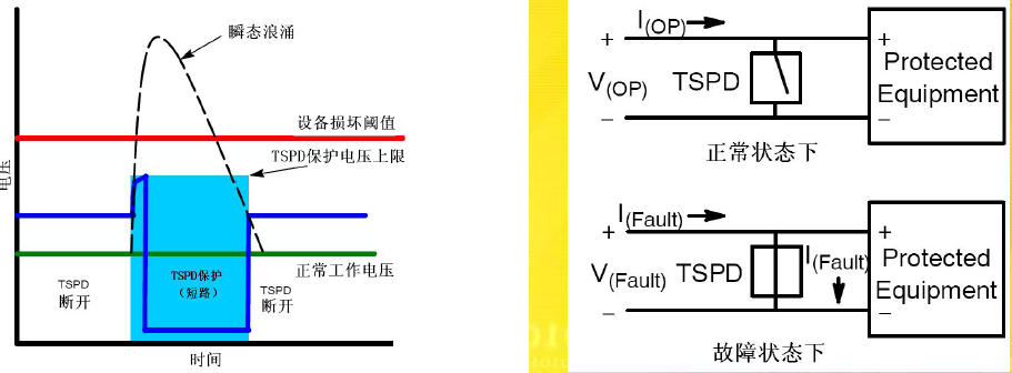 消弧保護器件:當一個激勵觸發(fā)時,通常是產生一個短路通道來實現(xiàn)保護目的。如晶閘管浪涌保護器件TSPD
