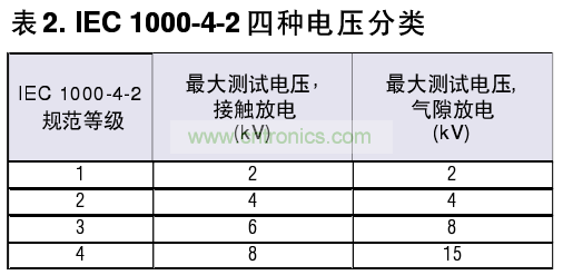 第二種方法是IEC 1000-4-2 >現(xiàn)已成為國際標準。相比Method 3015.7測試條件,它規(guī)定了更高的電容和更低的電阻}IE C 1000-4-2被廣泛地)II于測試終端設備的接口(表2)。值得一提的是> Maxim公司的模擬開關和RS-232/RS-485接口IC完個符合這些ESD標準,且無須外圍兒件。