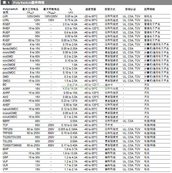 PolySwitch自復(fù)式器件器件選用方法
