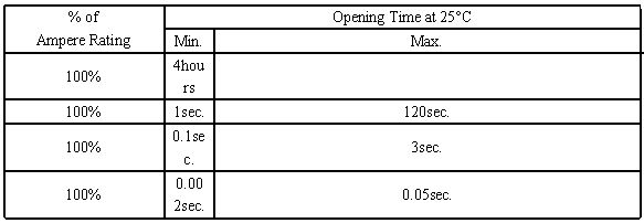 時(shí)間-電流特性表