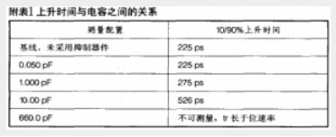 通常,USB 2.0 支持 480Mbps (bits per second) 的數(shù)據(jù)傳輸;DVI 和 HDMI 協(xié)議更是分別支持高達 8Gbps 和 5Gbps 的數(shù)據(jù)傳輸帶寬。在 USB 2.0、DVI 和 HDMI 的高速數(shù)據(jù)率下,傳統(tǒng)保護裝置的寄生電容可能破壞信號的完整性或令其失真。失真表現(xiàn)為由較慢的上升和下降時間所致的高態(tài)/低態(tài)瞬變的前沿和后沿被修圓。上升和下降時間較慢會給系統(tǒng)帶來一些問題,其中最重要的是時序問題。電路在特定的時間需要穩(wěn)定的“高”態(tài)和“低”態(tài)。隨著各狀態(tài)之間過渡時間的增加,電路有可能檢測到不完整的過渡期,從而將數(shù)據(jù)誤差引入系統(tǒng)。附表1是不同寄生電容 ESD 抑制器件對數(shù)據(jù)上升沿時間 (10%至90%高電平) 所造成的影響比較。