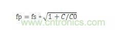 當(dāng)頻率繼續(xù)提高,高于fs時(shí),LCR支路呈感性,這樣和C0產(chǎn)生并聯(lián)諧振,并聯(lián)諧振頻率fp,其計(jì)算公式為: