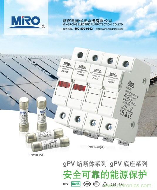 浙江茗熔電器生產(chǎn)的PV系列熔斷器是專門為保護太陽能光伏(PV)系統(tǒng)而設計的,適用于光伏組件串和光伏方陣電能系統(tǒng)中光伏匯流箱的應用;熔斷器能夠分斷故障PV陣列(反向電流、多排陣列故障)產(chǎn)生的較低過載電流,以保護和隔離光伏組列。該系列產(chǎn)品額定工作電壓DC 1000V,額定工作電流2A~30A的光伏電能系統(tǒng)中,具有全范圍分斷能力的熔斷體,額定分斷能力DC1000V/10kA。PV10光伏熔斷體由純銀帶/絲制成的熔體封裝于由高強度有機材質制成的熔管內(nèi);熔管中充滿經(jīng)化學處理過的高純度石英砂作為滅弧介質;熔體兩端通過焊接與接觸帽(內(nèi)蓋)牢固電連接,內(nèi)置的絕緣隔離墊片,能滿足光伏熔斷器系統(tǒng)在極端使用條件下的應用,確保性能更穩(wěn)定,表現(xiàn)更優(yōu)異、可靠。 產(chǎn)品符合IEC60269-6和GB/T 13539.6標準。熔斷體外形尺寸和基本性能與國內(nèi)外同類型產(chǎn)品接近,故能作為國外引進設備上同類型熔斷體的替換。