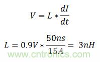 用電子負載測試電源的瞬態(tài)響應很常見。對許多系統(tǒng)軌(如服務器的3.3V或5V總線)而言,電子負載很容易配置為在2-10A/us的范圍內(nèi)汲入電流的模式。但是,內(nèi)核電壓可能需要轉(zhuǎn)換速率比這些水平高兩個數(shù)量級。高轉(zhuǎn)換速率測試中的一個主要限制因素是負載路徑中的寄生電感。要以300A/us的速率為0.9V輸出轉(zhuǎn)換15A的電流,公式1計算出的最高電感是3nH。作為參考,成圈狀通過電流探頭的16級導線的1英寸片可將20nH的電感添加到負載路徑中。很明顯,需要另一種電流汲入方法。