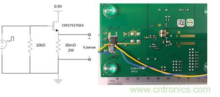 大多數(shù)電源評估模塊可以很容易地被配置為快速汲入電流的模式。圖1舉例說明了分立金屬氧化物半導體場效應晶體管(MOSFET)加可直接從輸出平面焊接到接地裝置的檢測電阻器電路。選擇快速切換的低柵極電荷MOSFET以及能處理負載功率的低電感檢測電阻器至關(guān)重要。