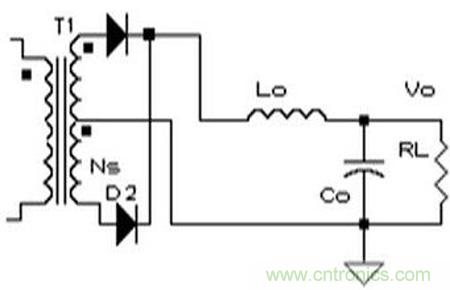 Q1關(guān)斷,Q2關(guān)斷,此時(shí)變壓器副邊兩個(gè)繞組由于整流二極管兩個(gè)管子同時(shí)續(xù)流而處于短路狀態(tài),原邊繞組也相當(dāng)于短路狀態(tài)。