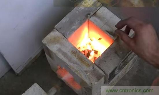 ▼ 先把電路芯片放入這個用磚頭砌成的冶煉器中