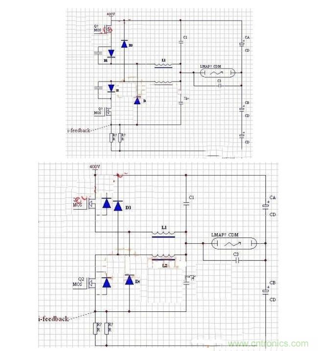 三級(jí)的效率其實(shí)不是問(wèn)題。調(diào)試得當(dāng) 91是沒(méi)太大問(wèn)題的??蓡?wèn)題不在效率這里。換向鋁電解的問(wèn)題,的確是個(gè)問(wèn)題,不然CCI也不會(huì)出如此復(fù)雜的波形來(lái)控制。但這個(gè)問(wèn)題,根本上來(lái)說(shuō),是可解決的,只是控制電路復(fù)雜一些而已。三級(jí)電路如果降壓為母線端,則需要高壓驅(qū)動(dòng),驅(qū)動(dòng)麻煩。當(dāng)然這樣的結(jié)果是取樣方便。如果在地端,則取樣不便。全橋不可控狀態(tài)。
