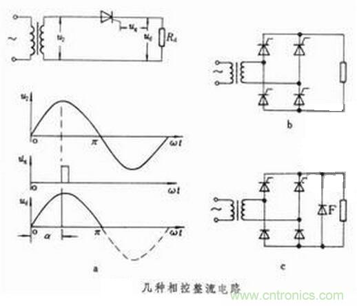 采用相位控制方式以實現(xiàn)負載端直流電能控制的可控整流電路??煽厥且驗檎髟褂镁哂锌刂乒δ艿木чl管。在這種電路中,只要適當控制晶閘管觸發(fā)導通瞬間的相位角,就能夠控制直流負載電壓的平均值。故稱為相控。