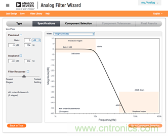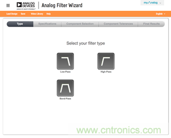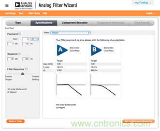 模擬濾波器向?qū)Ь褪沁@樣一種用于現(xiàn)實運算放大器的實用設(shè)計工具。這款工具讓您不必再苦尋濾波器建議,助您設(shè)計出具備所需特性的低通、高通或帶通濾波器,且準備時間更短(圖1)。