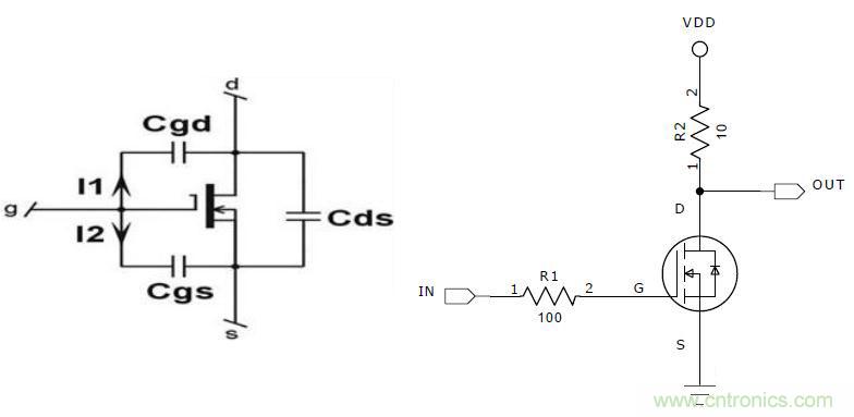 MOS管等效電路及應(yīng)用電路如下圖所示: