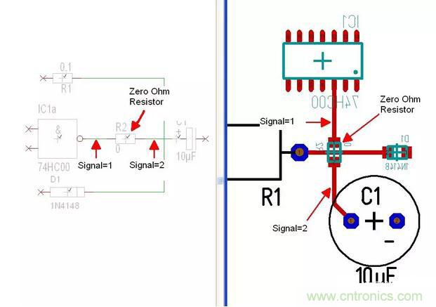 跳線?如果在研發(fā)的時(shí)候還可以,但有一天你的設(shè)計(jì)變成了產(chǎn)品需要大批量生產(chǎn)了,機(jī)器折騰起跳線來要比放置一個(gè)電阻麻煩的多了,這時(shí)候0Ω的電阻就幫你大忙了,根據(jù)你的空間,你可以選用0805、0603或0402的電阻。